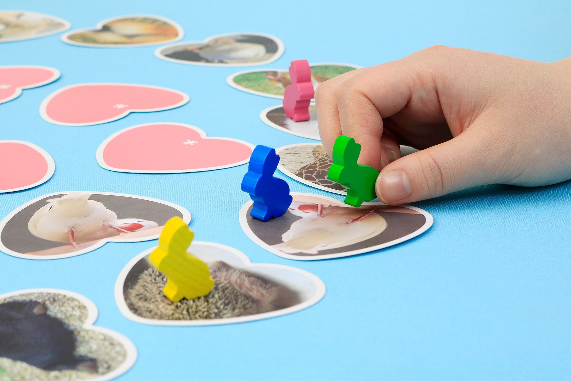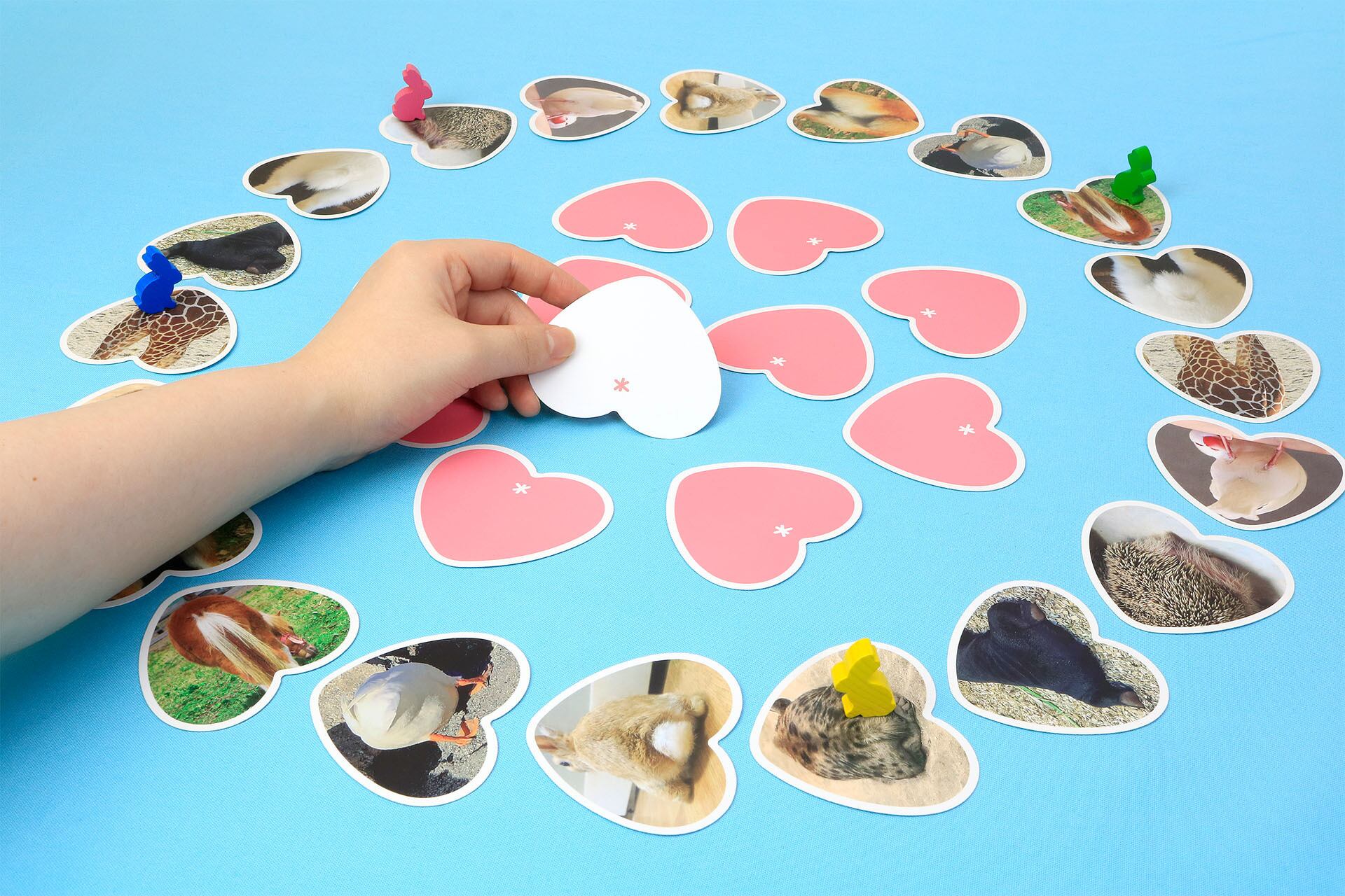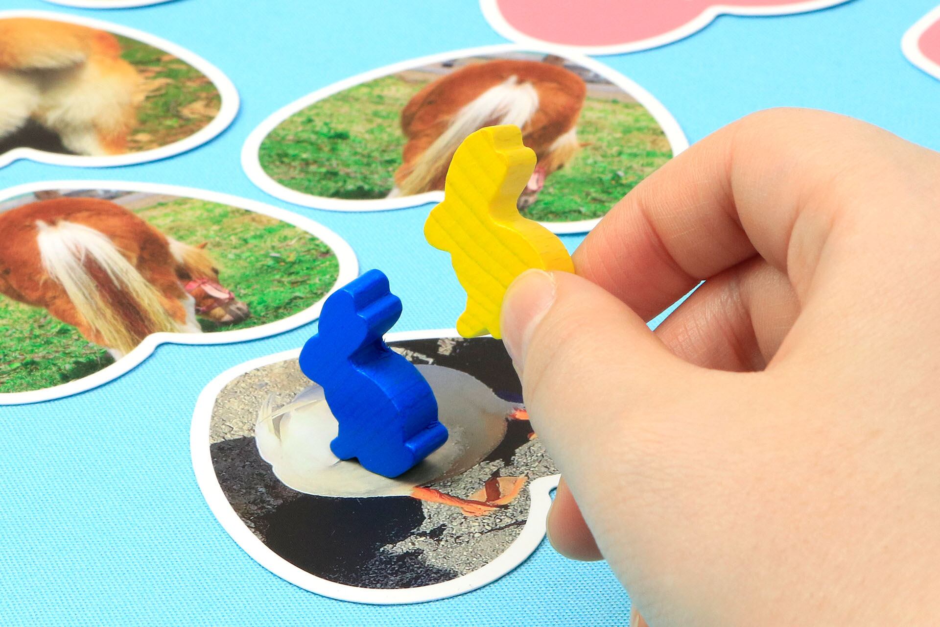かわいいウサギの木ゴマと『どうぶつのおしりカード』で、ぐるぐる追い抜きゲーム