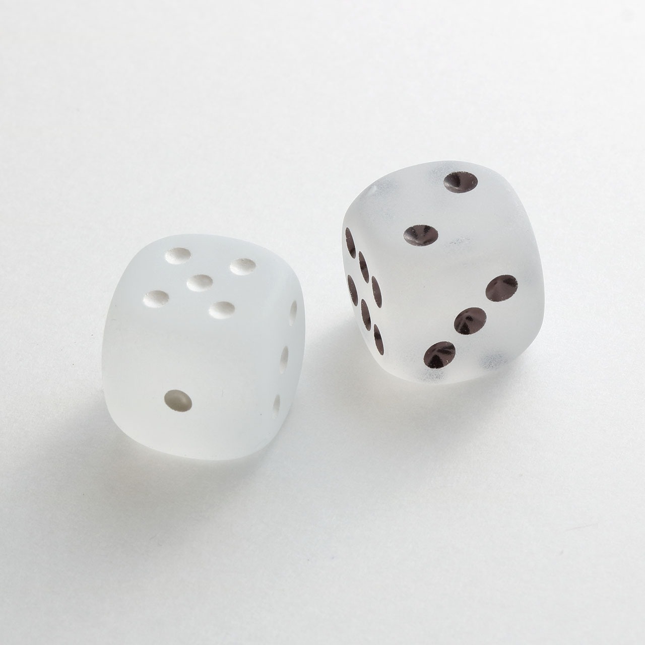 「フロスト・クリア」は、透明地にフロスト加工(曇りガラスのような見た目と手触り)で仕上げたダイスです。