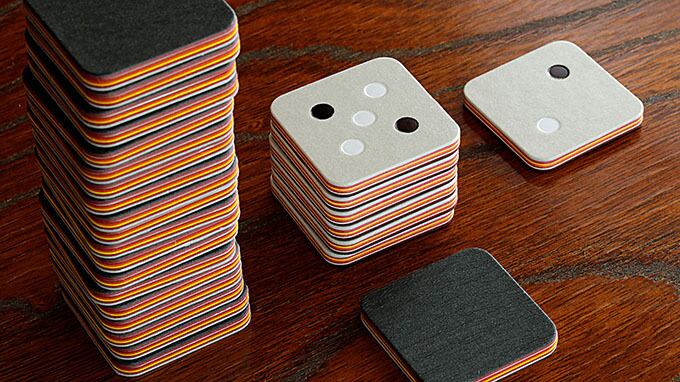 タイルはクラシック版よりも厚く、色違いの染色ペーパーの9層構造で、ドットやアイコンは箔押しです。断面が美しく、手に持ったときの重量感も別格です。
